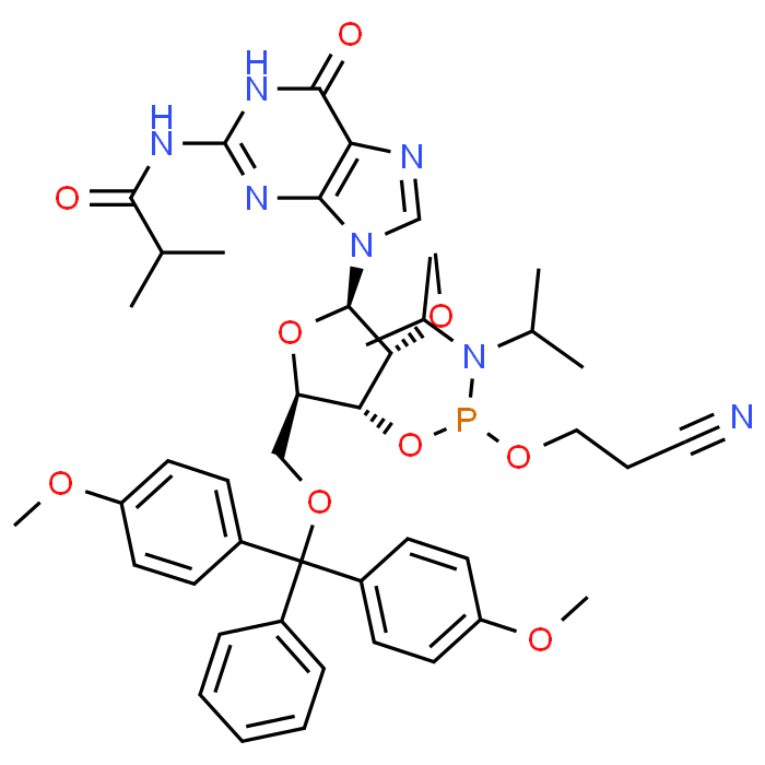 SMILES | CC(C)C(=O)NC1=NC2=C(C(=O)N1)N=CN2[C@H]3[C@@H]([C@@H]([C@H](O3)COC(C4=CC=CC=C4)(C5=CC=C(C=C5)OC)C6=CC=C(C=C6)OC)OP(N(C(C)C)C(C)C)OCCC#N)OC | ||